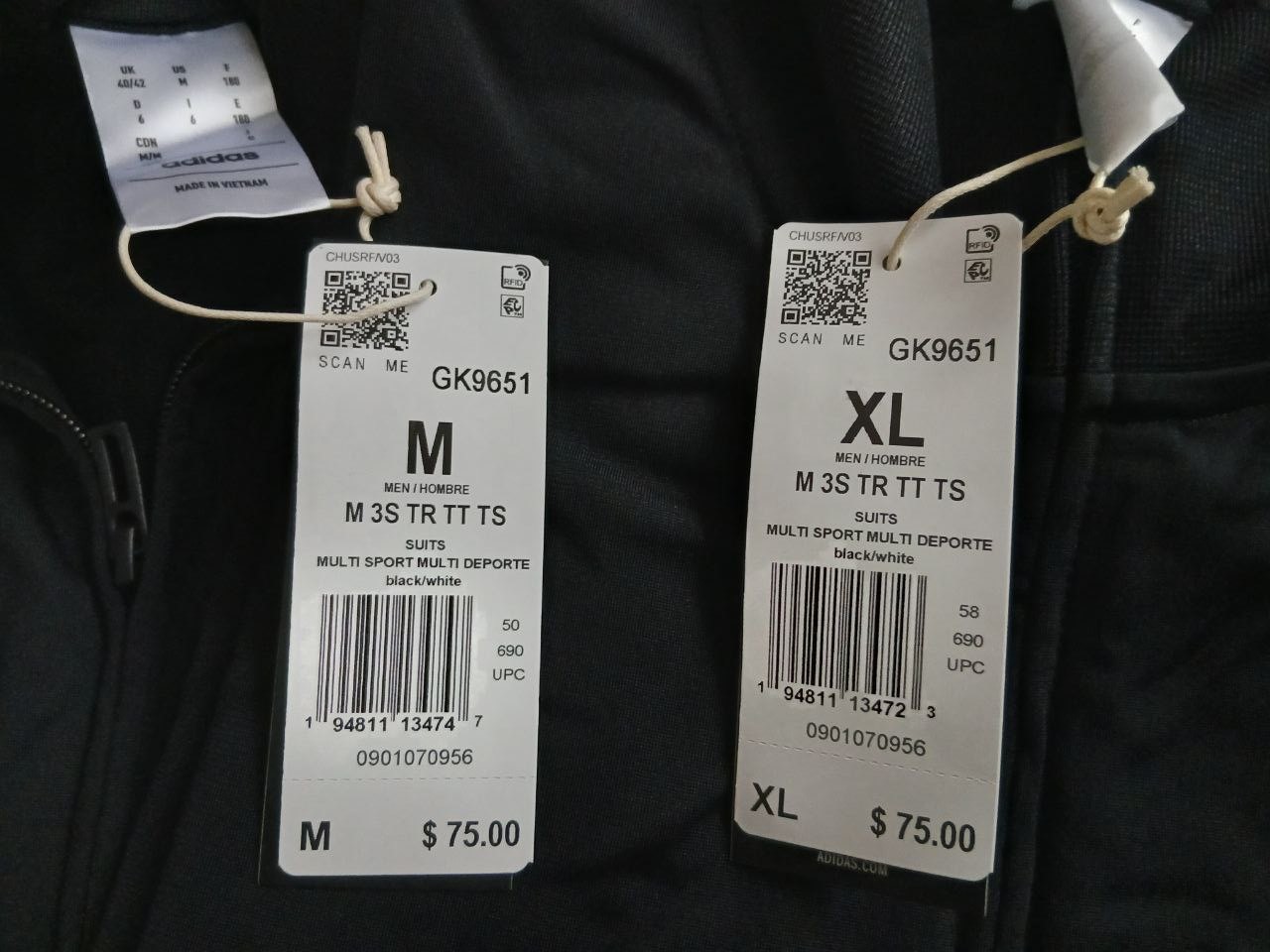 • ХL (верх: груди 62 см/ плечі 50 см/ рукав 69 см\ Штани: зовн.шов 106 см/ внтур шов 77 см)