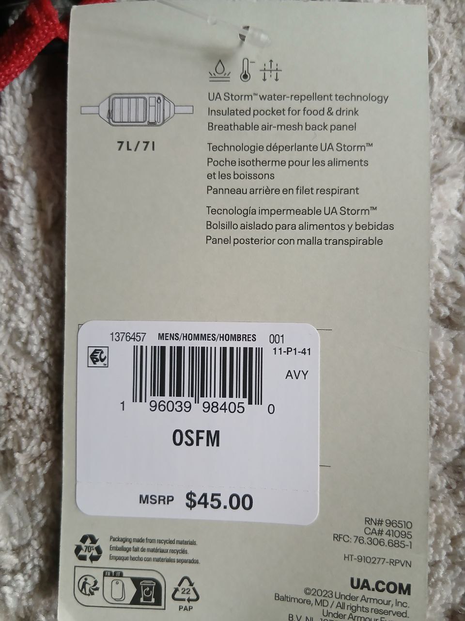 Under Armour Mens Project Rock сумка , обєм 7L, розміри 30 см\20 см\ 7 см. Водовідштовхуюче покриття STORM, 3 окремих відділи на блискавці. Регульований ремінь.