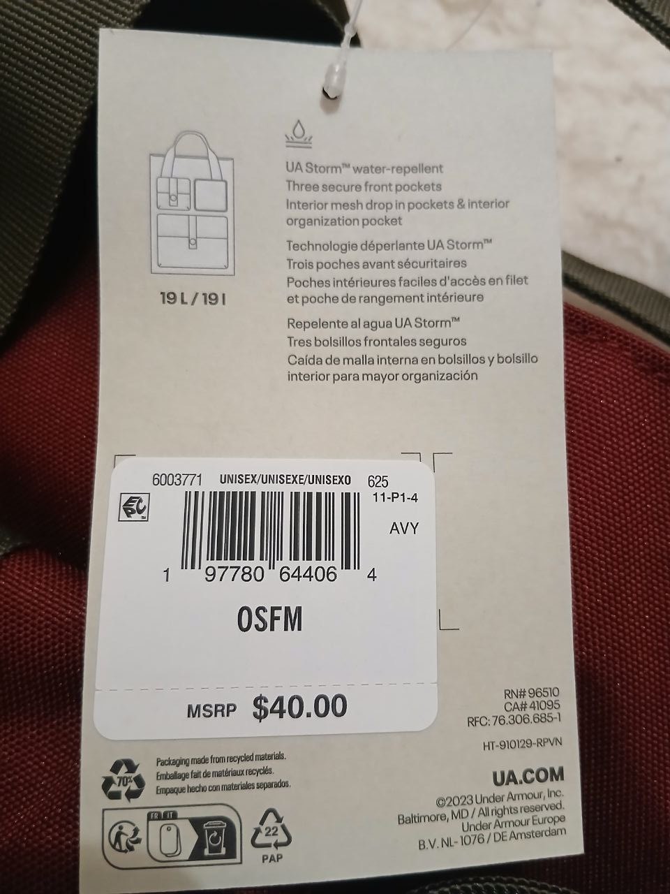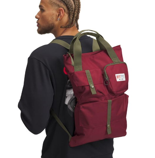 Under Armour Project Rock Gym Sack рюкзак — сумка, лімітована серія Red One, основний великий відділ на замку, в цьому відділі є відділ для ноутбука та 2 розділені. + окремий відділ на застібці і дві накладні кишені. Класичні ручки як для рюкзака та для сумки. Матеріал STORM водовідштовхуючий. Розмір: обєм 19L, ( заміри: висота 49 см\ ширина 35 см)(колір вживу темніший, як на моїх фото)
