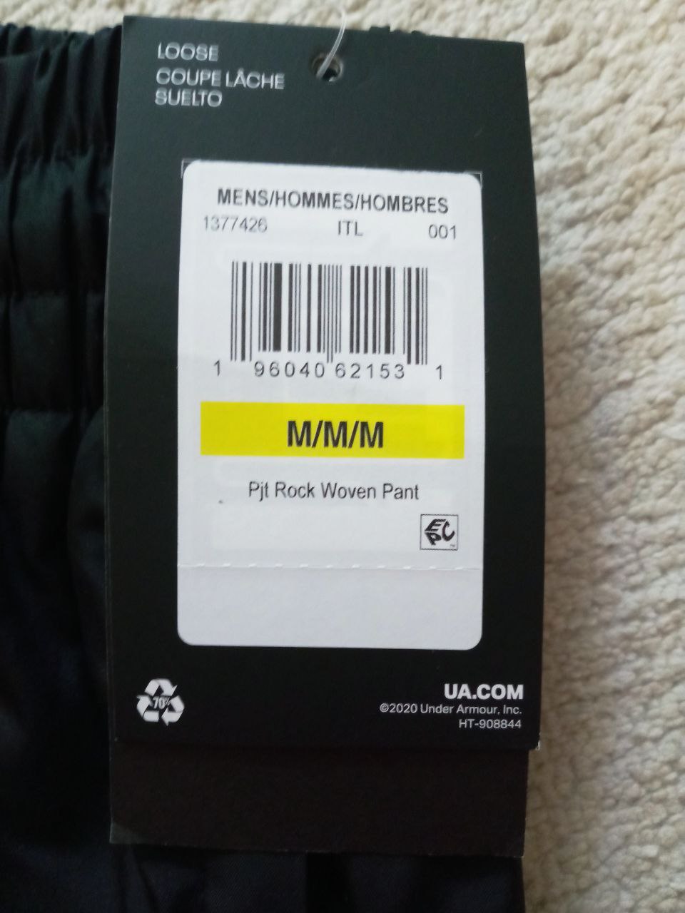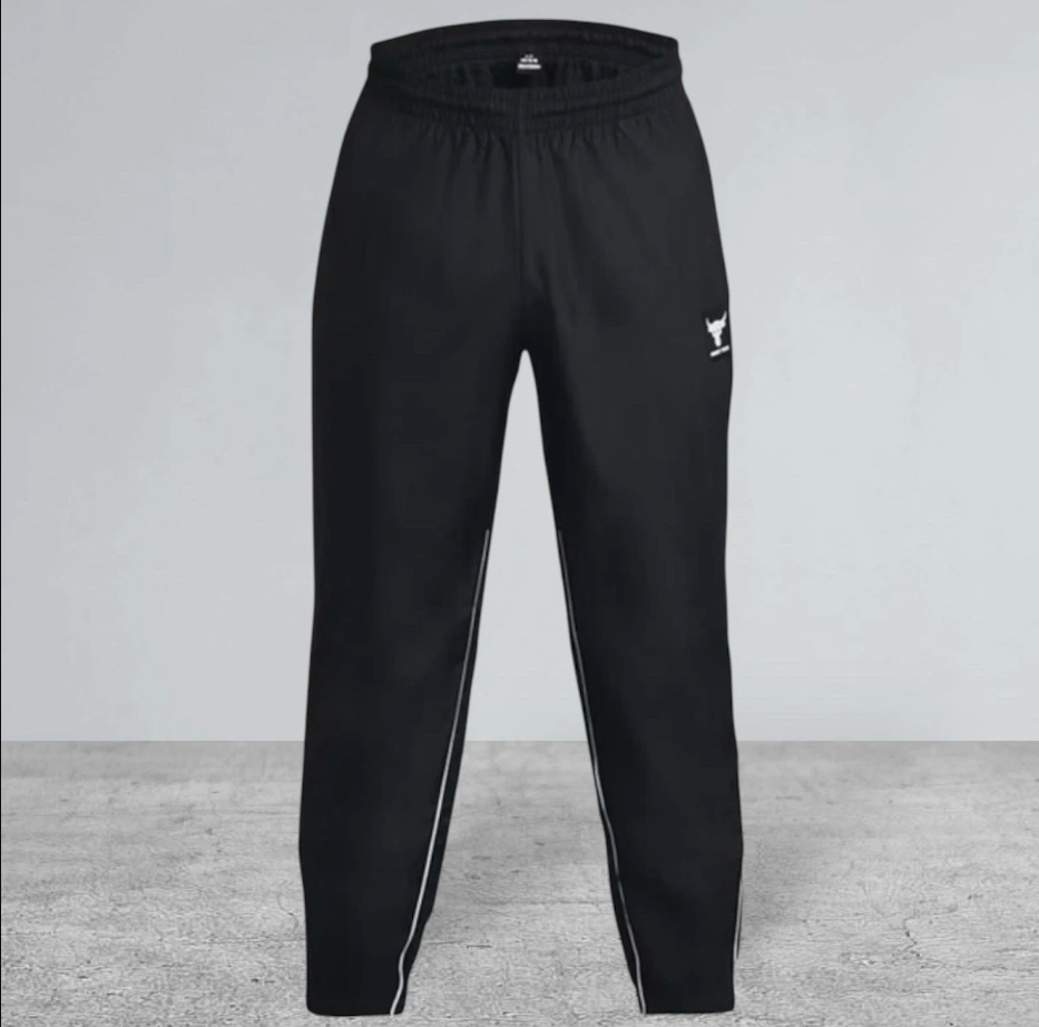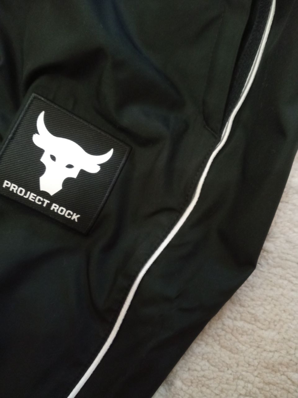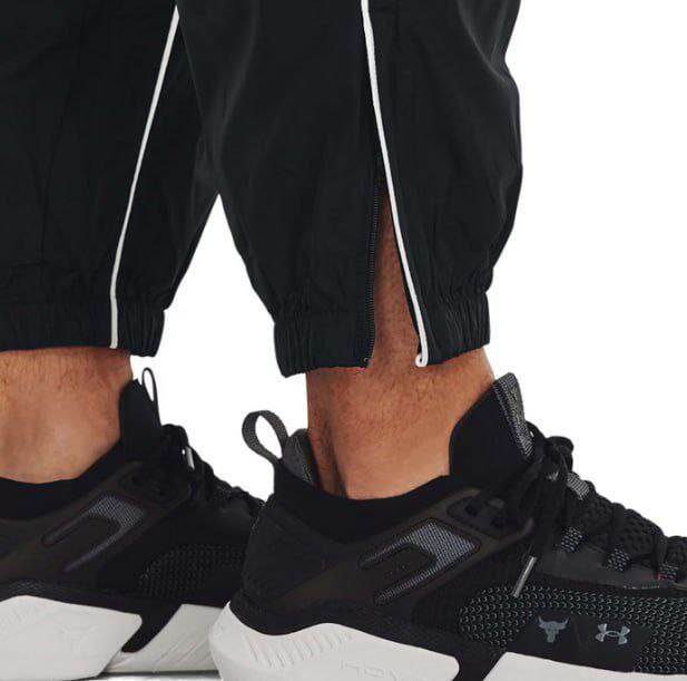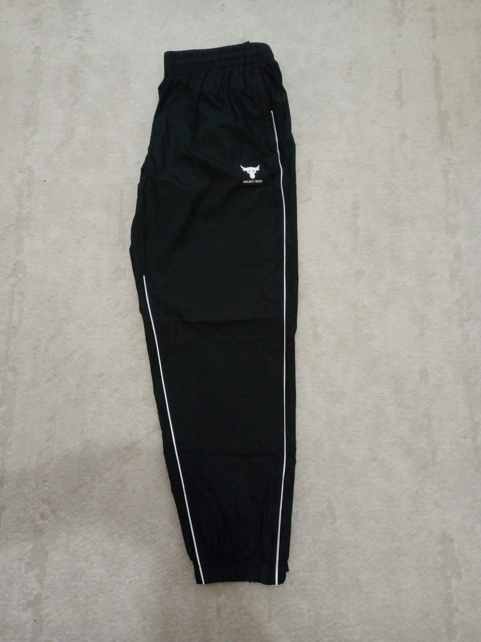 Under Armour Project Rock Woven спортивні штани з водовідштовхуючим покриттям, верх тонкий нейлон, всередині сітчата підкладка, кишені на замках, пояс резинка + шнурівки.